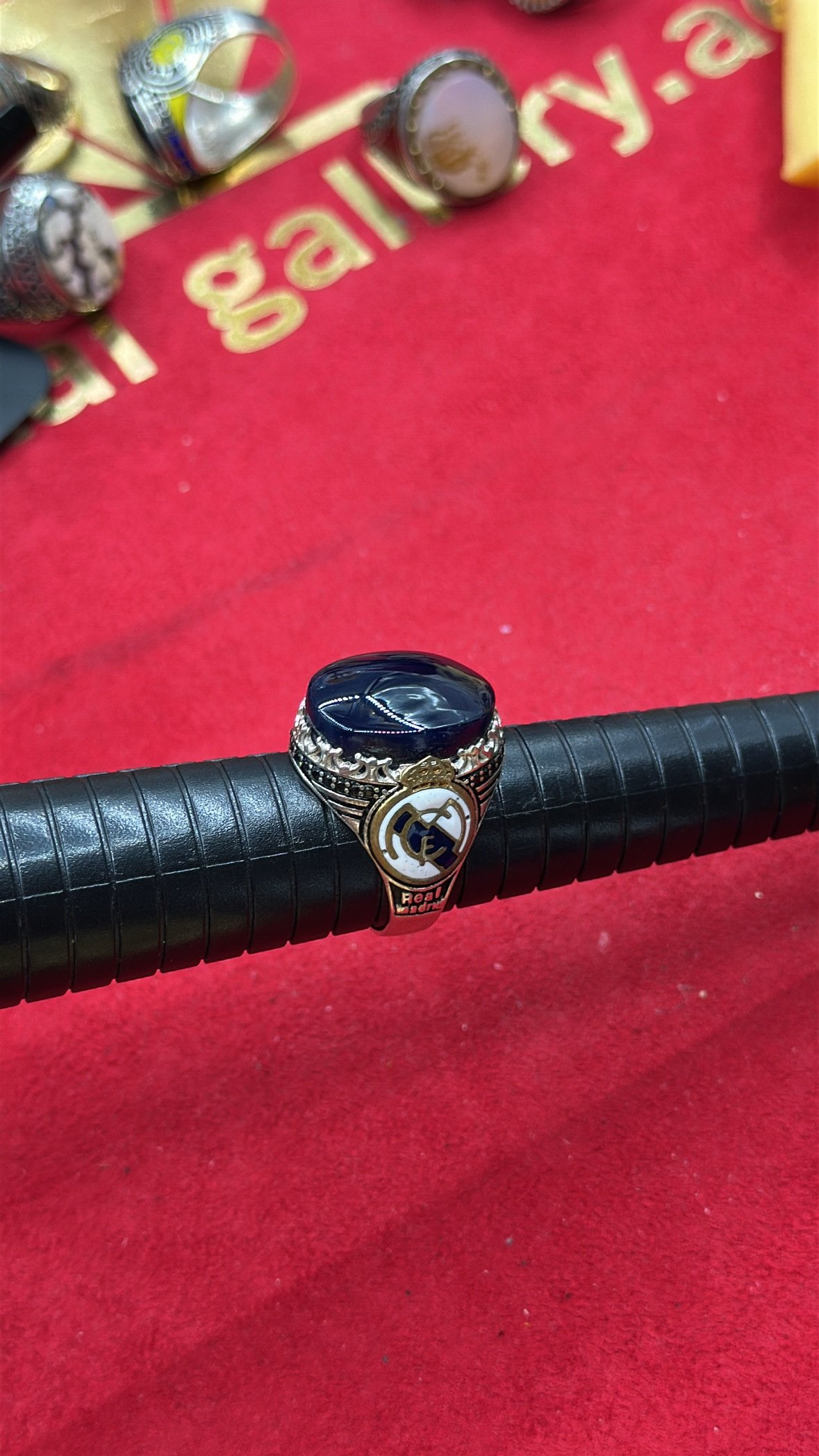 خاتم عقيق ازرق فضه عيار 925 يتميز بشعار نادي ريال مدريد 😍👌