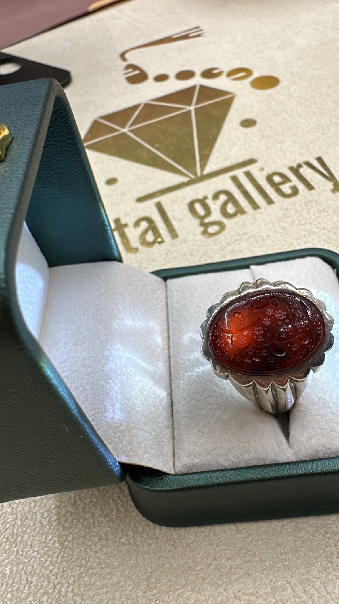 خاتم عقيق منقوش (المهيمن) نقش بنده يا علي فضه عيال 999 الصايغ S